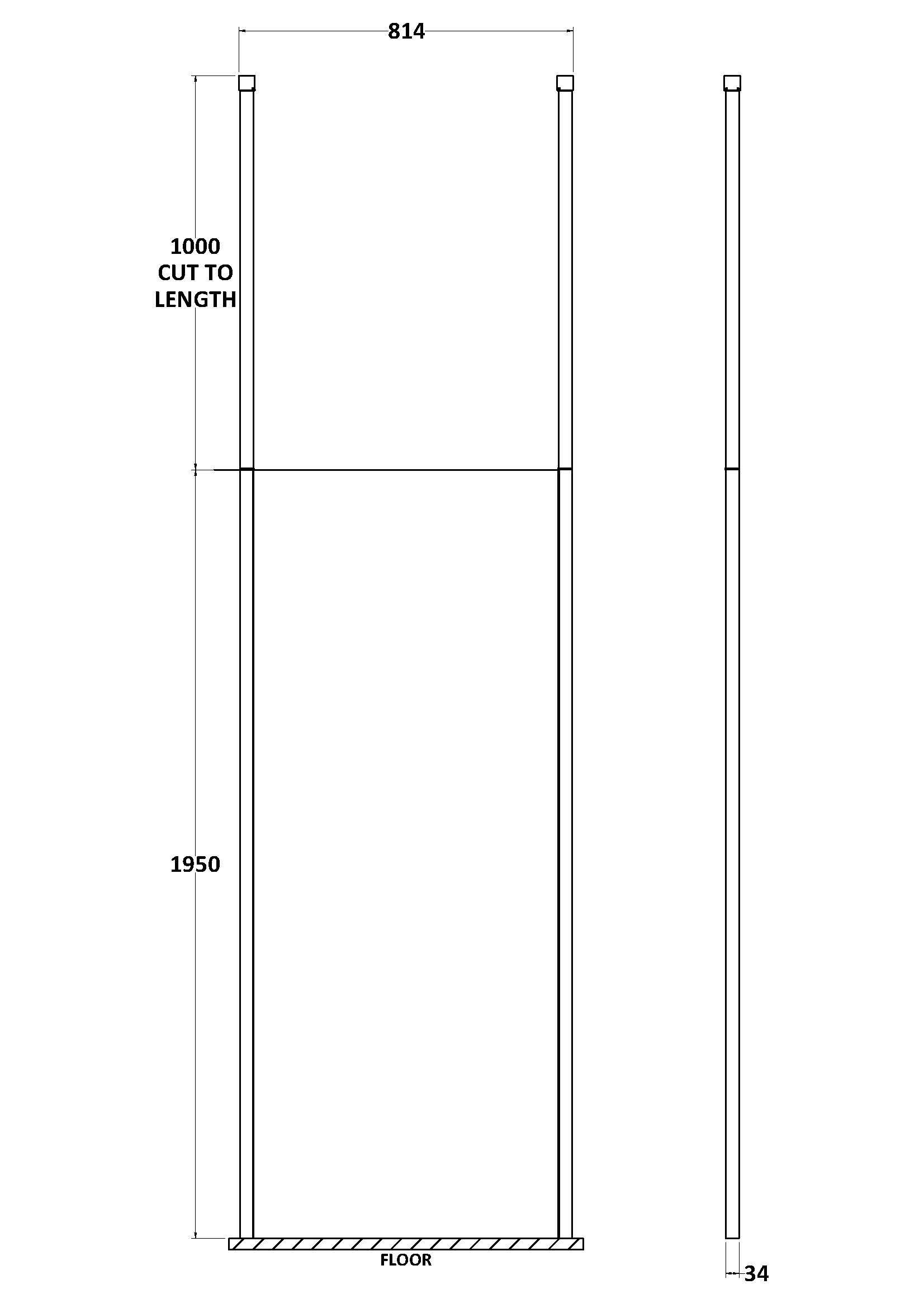 800 Wetroom Screen with Ceiling Poles
