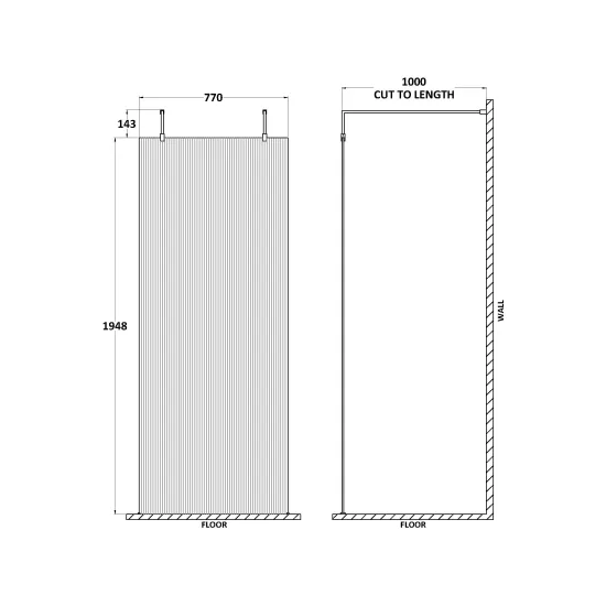 800mm Fluted Wetroom Scren with Arms & Feet Brushed Brass