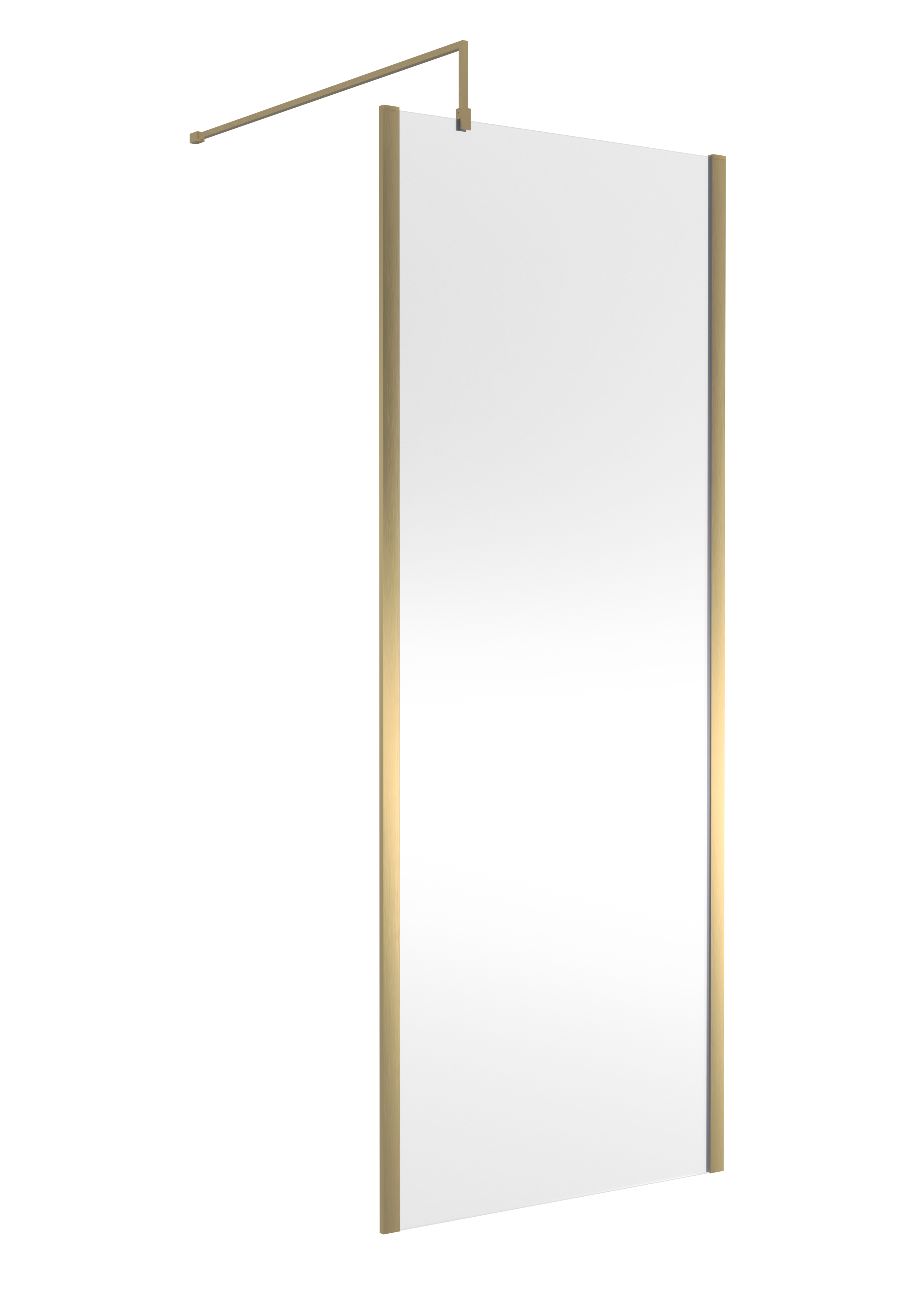 Nuie 800mm Brushed Brass Wetroom Screen With Support Bar and Profile Kit