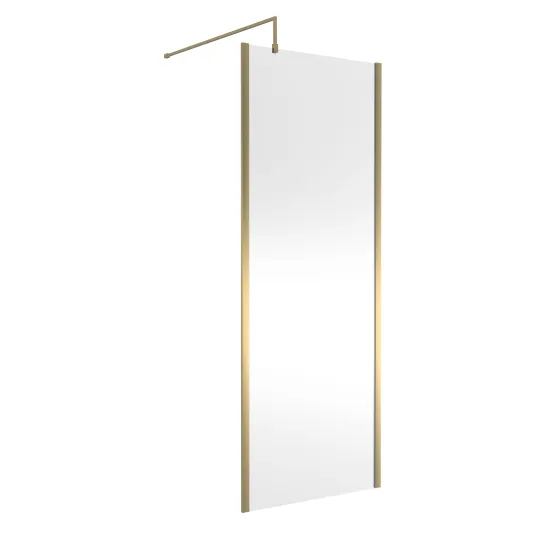 Hudson Reed 800mm Outer Framed Wetroom Screen with Support Bar - 8mm Glass - Brushed Brass
