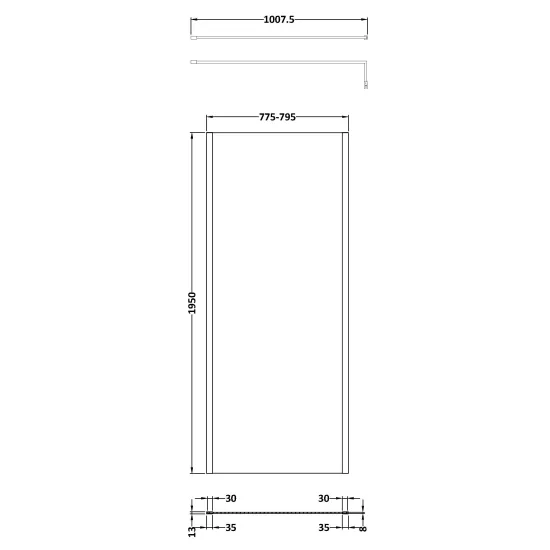 Hudson Reed 800mm Outer Framed Wetroom Screen with Support Bar - 8mm Glass - Matt Black