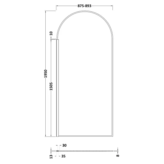 Hudson Reed 900mm Arched Wetroom Screen - 8mm Glass - Matt Black