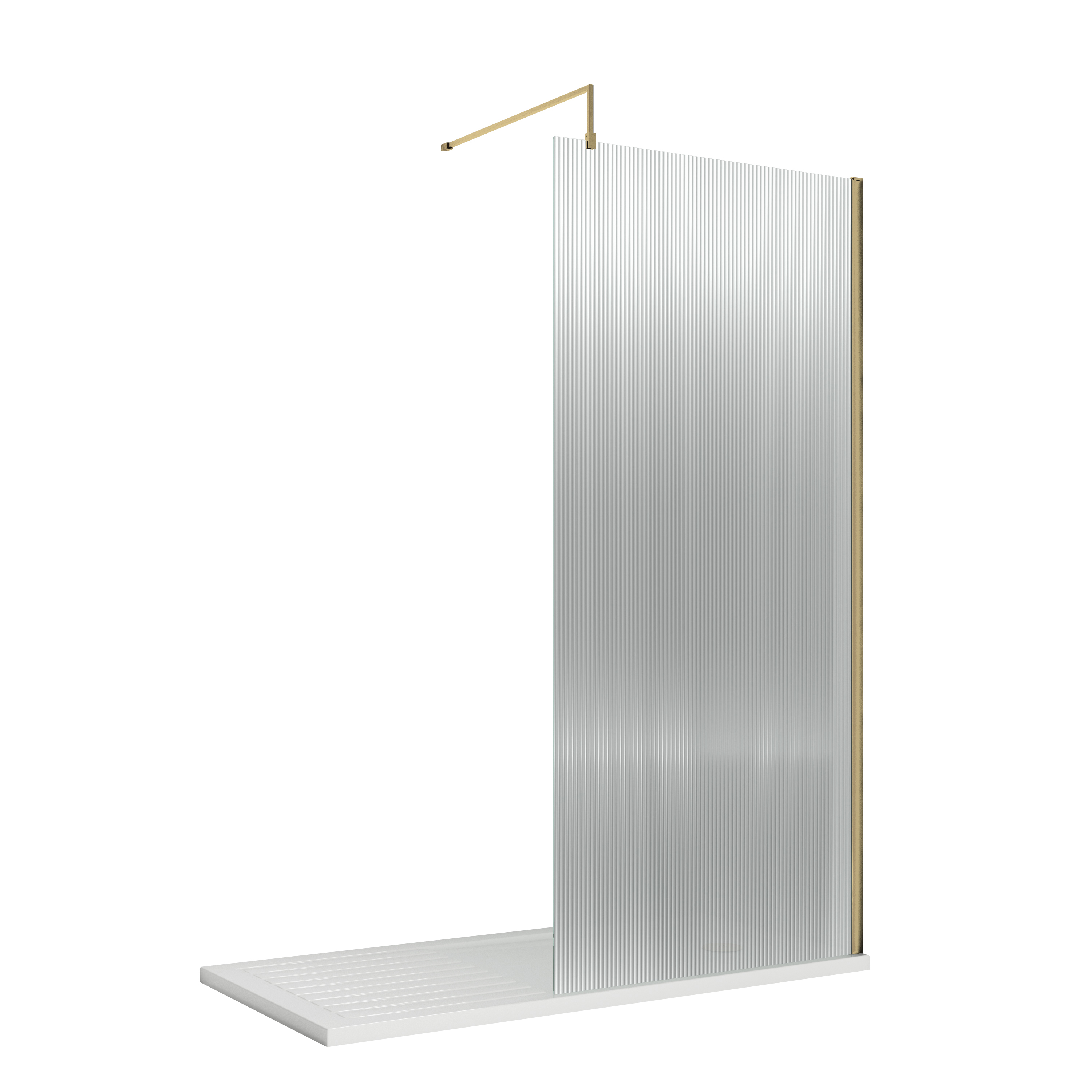 900mm Fluted Wetroom Screen with Support Bar Brushed Brass
