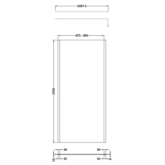 900mm Outer Framed Wetroom Screen with Support Bar