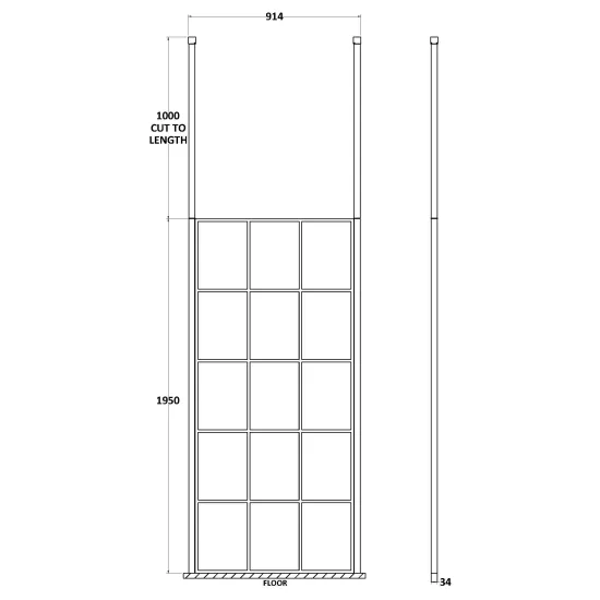 900x1950mm Frame Wetroom Screen with Ceiling Posts - Matt Black