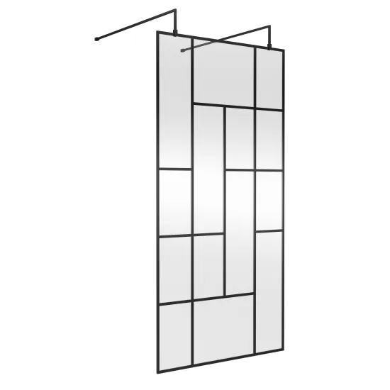 Hudson Reed Abstract 1000mm Frame Wetroom Screen with Support Bars - 8mm Glass - Matt Black