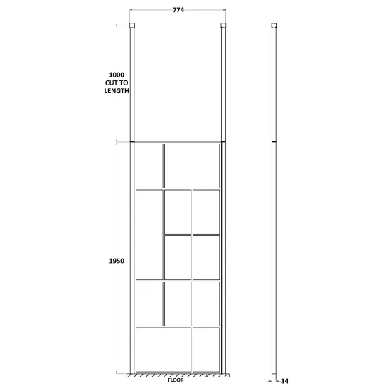 Abstract 760mm Frame Wetroom Screen with Ceiling Posts