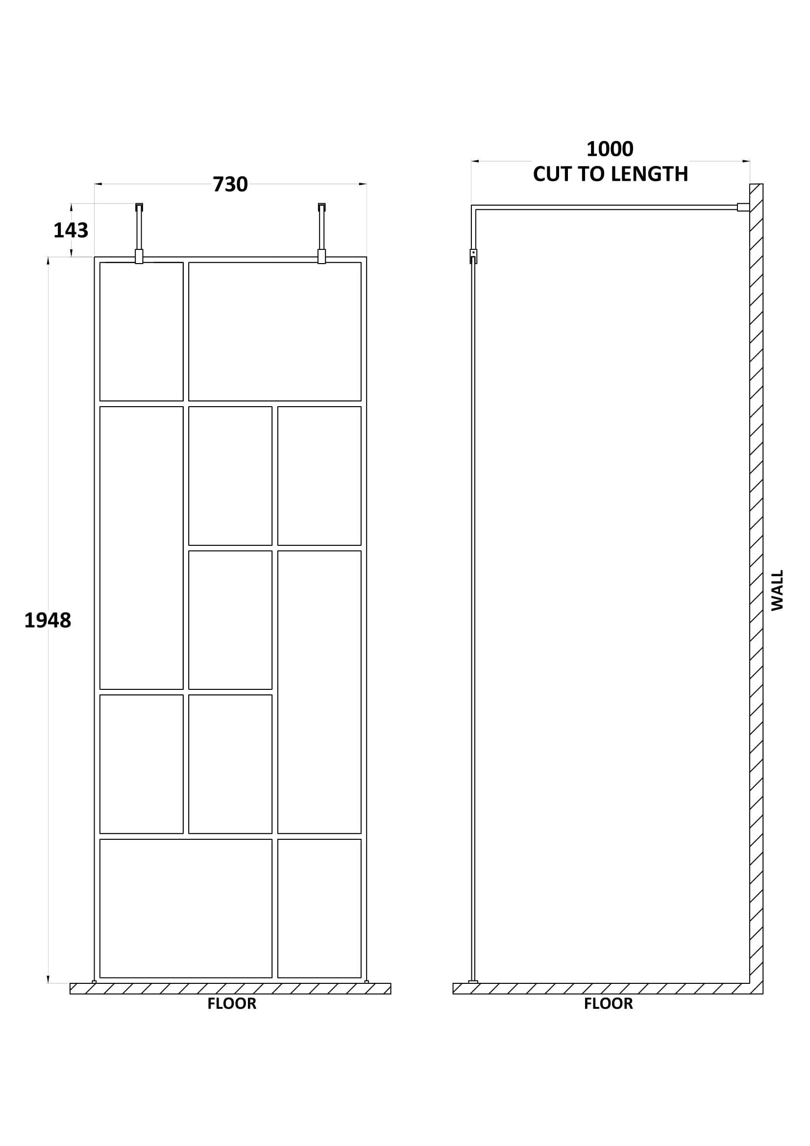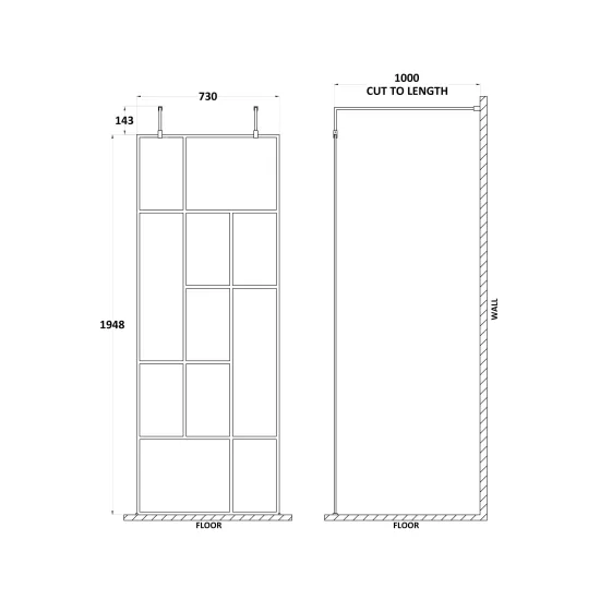 Hudson Reed Abstract 760mm Frame Wetroom Screen with Support Bars - 8mm Glass - Matt Black