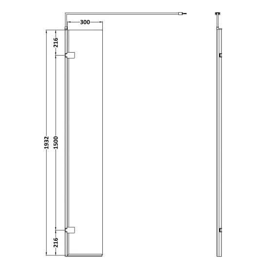Hudson Reed Chrome Wetroom Swing Screen 300 x 1950mm - 8mm Glass - Polished Chrome