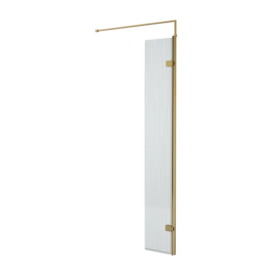nuie Fluted Wetroom Fluted Wetroom 8mm Toughened Safety Glass Swing Return Screen, 300mm x 1850mm - Brushed Brass