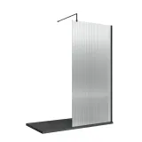 Nuie 800mm x 1850mm Fluted Matt Black Wetroom Screen Including Support Bar