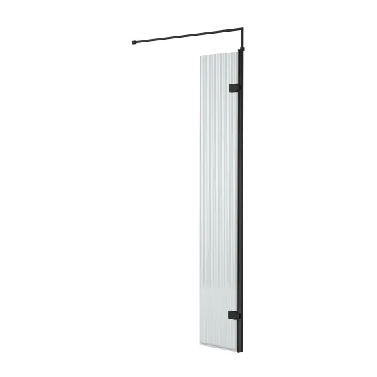 nuie Fluted Wetroom Fluted Wetroom 8mm Toughened Safety Glass Swing Return Screen, 300mm x 1850mm - Matt Black