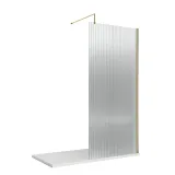 800mm Fluted Wetroom Screen with Support Bar Brushed Brass