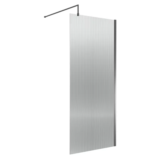 nuie Fluted Wetroom Screen - 1850x900mm - Brushed Pewter