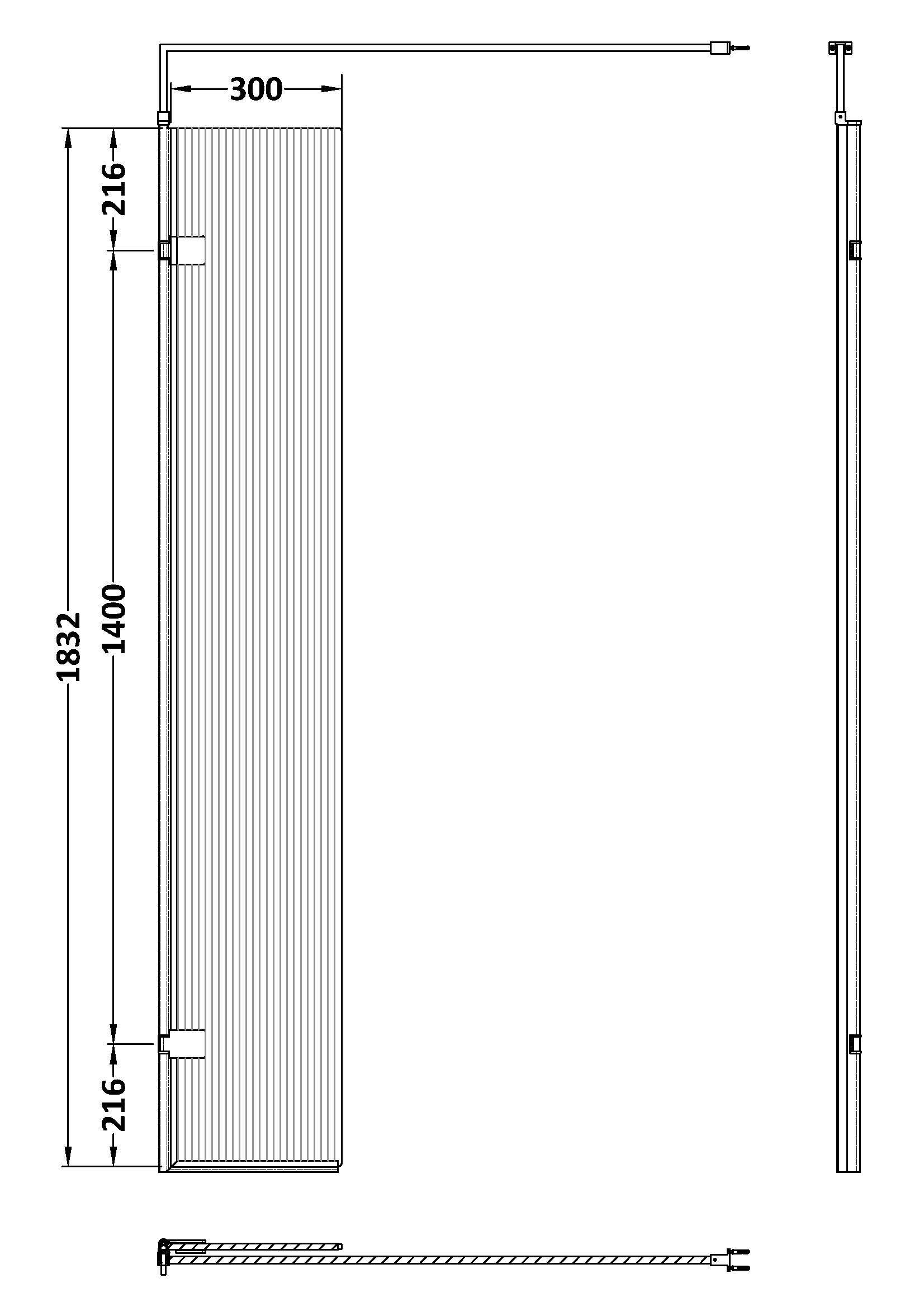 Fluted Wetroom Screens 300mmx1850mm Fluted Hinged Screen Including Support Bar
