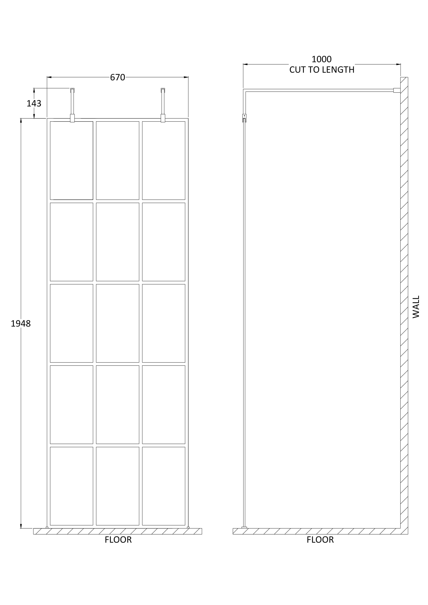 Refined wetroom screen design for open, contemporary bathroom spaces.