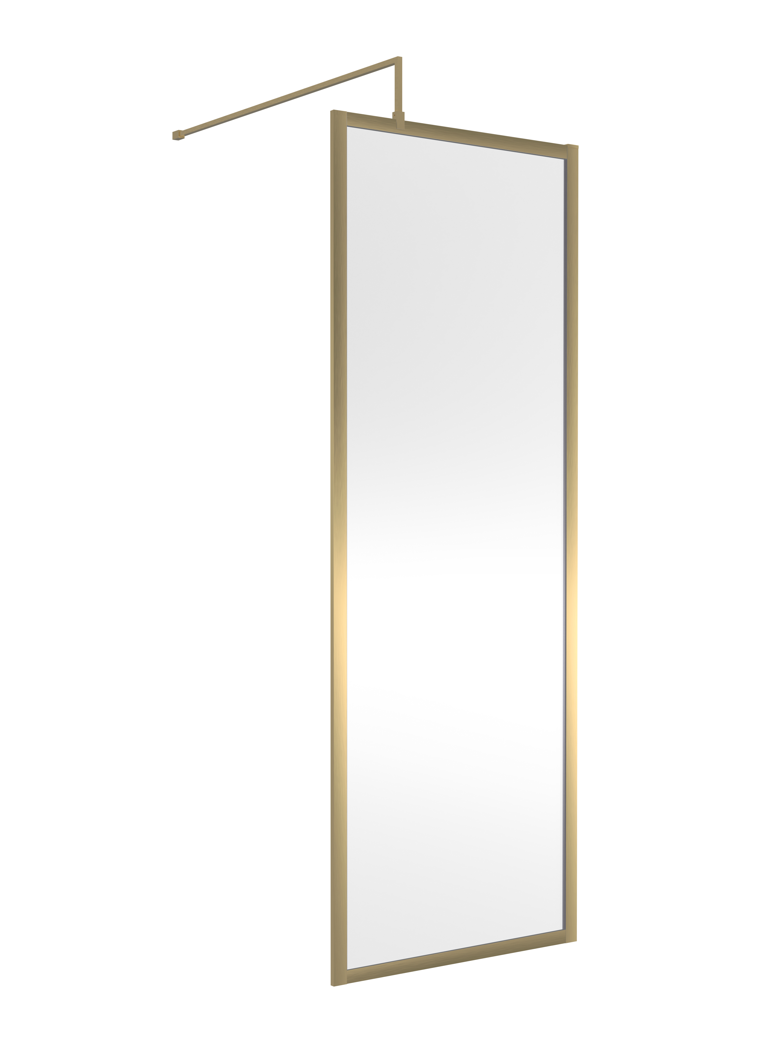 Nuie 1850mm x 700mm 8mm Brushed Brass Framed Wetroom Screen Including Support Bar & Profile Kit
