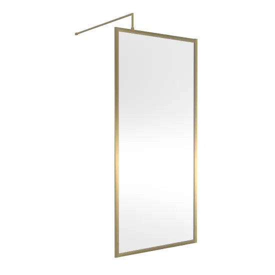 nuie Full Outer Frame Wetroom Screens Full Outer Frame Wetroom 8mm Toughened Safety Glass Screen 1850mm x 900mm x 8mm - Brushed Brass