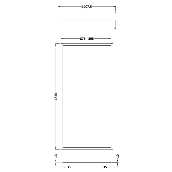 nuie Full Outer Frame Wetroom Screens Full Outer Frame Wetroom 8mm Toughened Safety Glass Screen 1850mm x 900mm x 8mm - Matt Black
