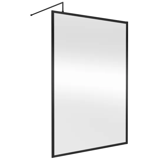 Hudson Reed Full Outer Frame Wetroom Screens Full Outer Frame Wetroom 8mm Toughened Safety Glass Screen & Support Bar 1950mm x 1400mm x 8mm - Matt Black