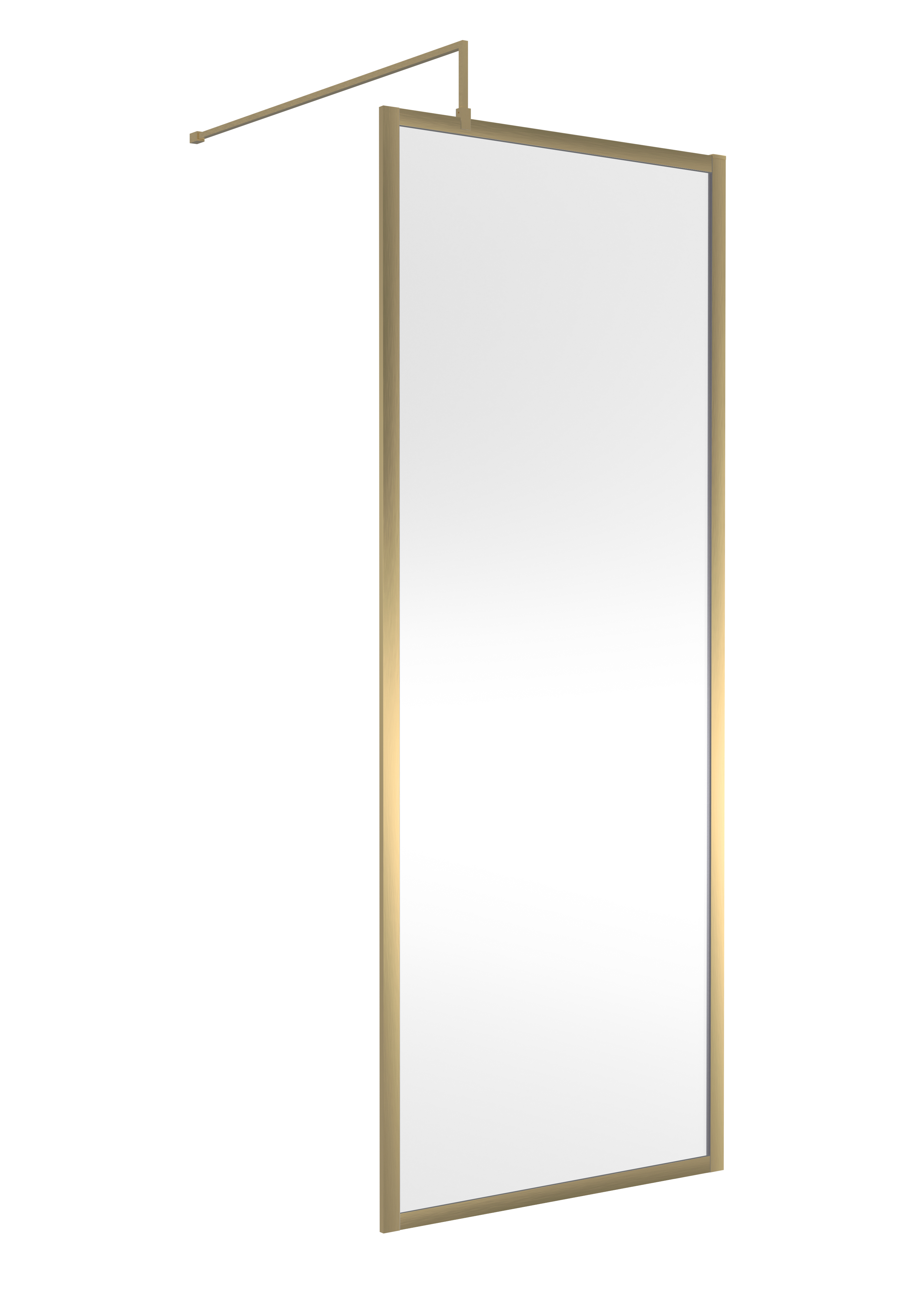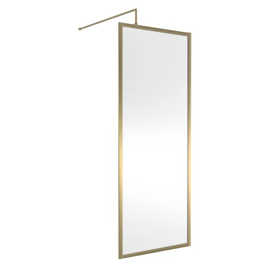 Hudson Reed Full Outer Frame Wetroom Screens Full Outer Frame Wetroom 8mm Toughened Safety Glass Screen & Support Bar 1950mm x 800mm x 8mm - Brushed Brass