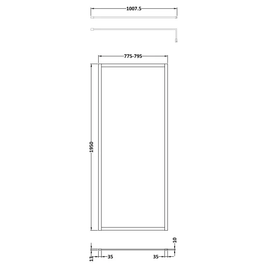 Full Outer Frame Wetroom Screens Full Outer Frame Wetroom 8mm Toughened Safety Glass Screen & Support Bar 1950mm x 800mm x 8mm