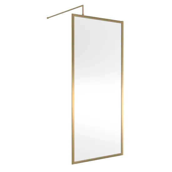 Hudson Reed Full Outer Frame Wetroom Screens Full Outer Frame Wetroom 8mm Toughened Safety Glass Screen & Support Bar 1950mm x 900mm x 8mm - Brushed Brass