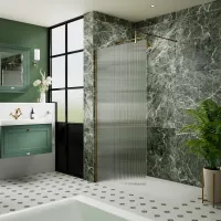 Nuie 800mm Brushed Brass Wetroom Screen With Support Bar and Profile Kit