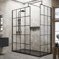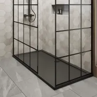 Nuie 1700mm x 700mm Matt Black Wetroom Screen with Return Screen With Tray
