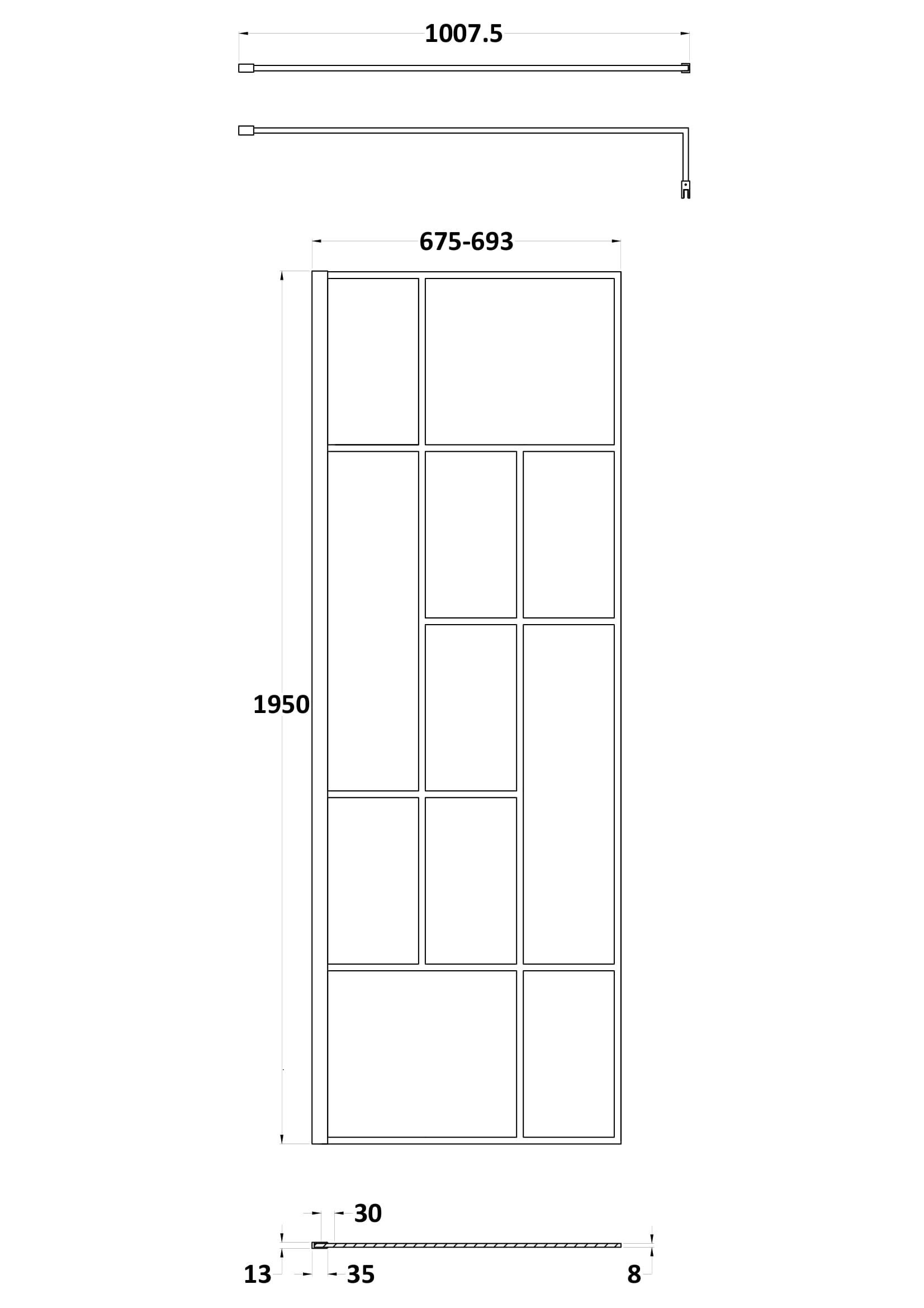 Synergy Abstract Wetroom Panel 1950mm x 700mm - Matt Black