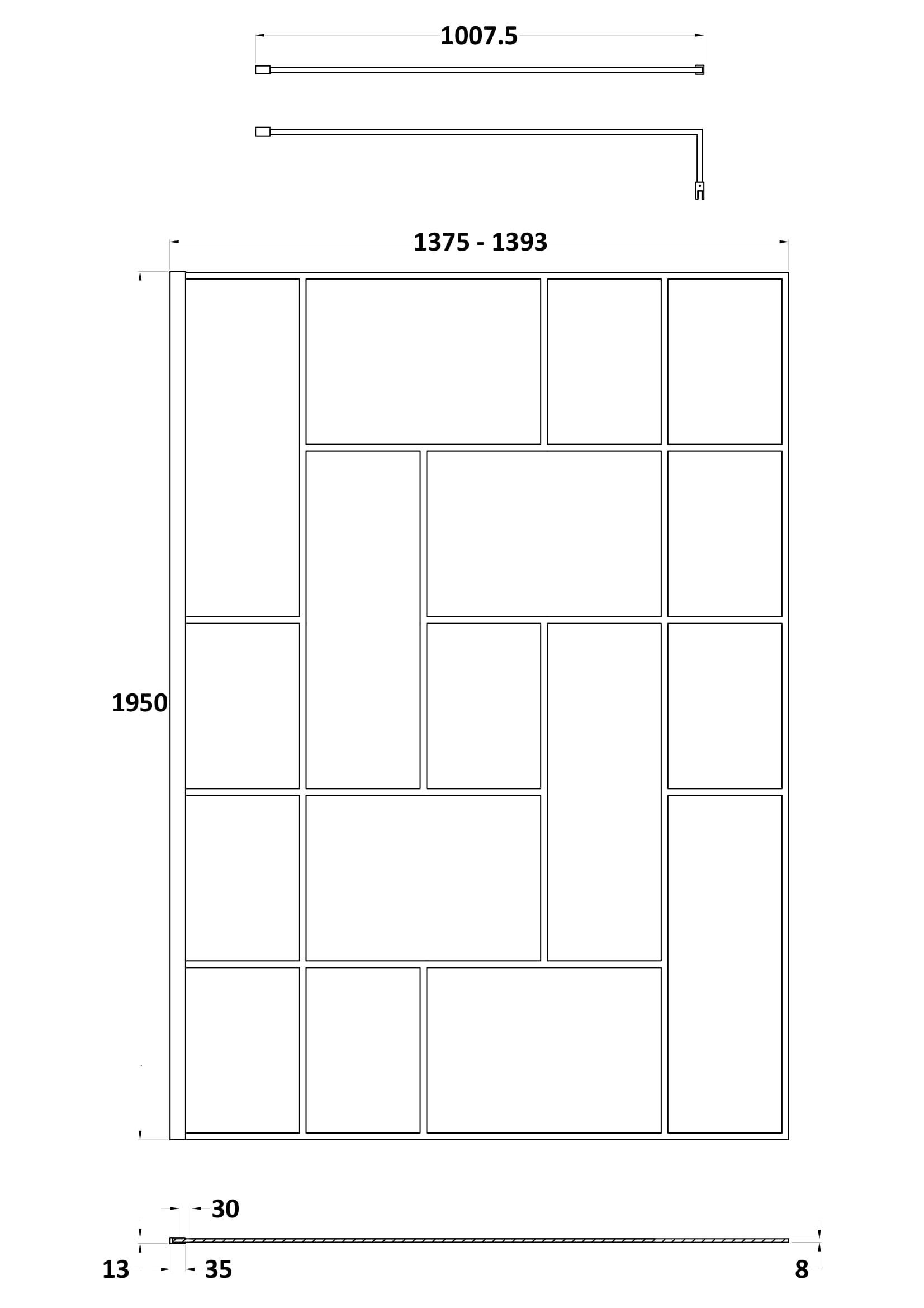 Synergy Abstract Wetroom Panel 1950mm x 1400mm - Matt Black