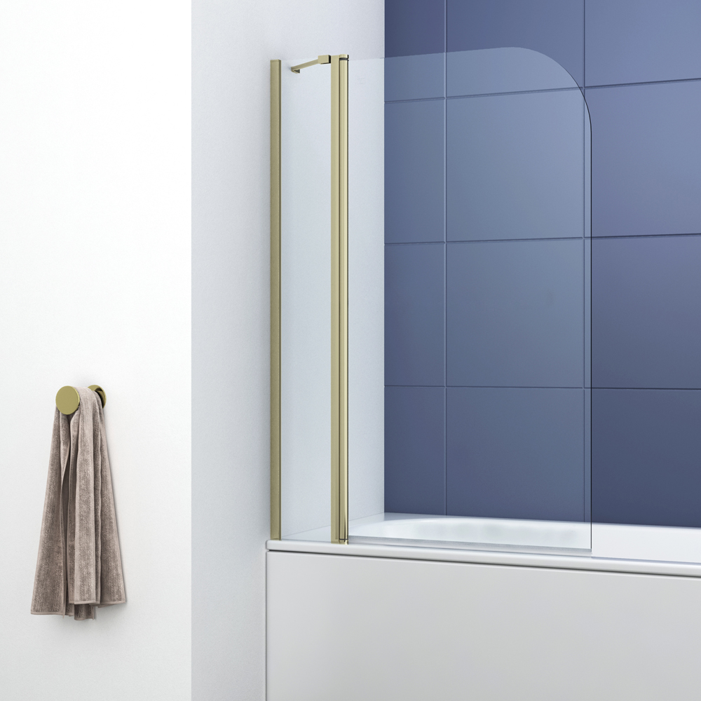 Aquadart Venturi 6+ Curved Extended Bath Screen Hinged With Rail - Brushed Brass