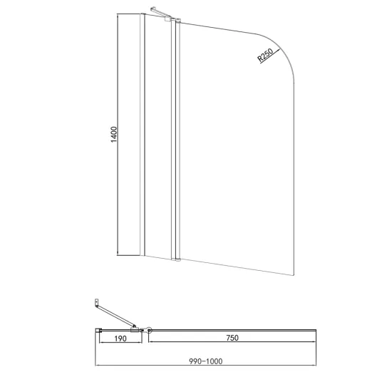 Venturi 6+ Curved Extended Bath Screen Hinged With Rail