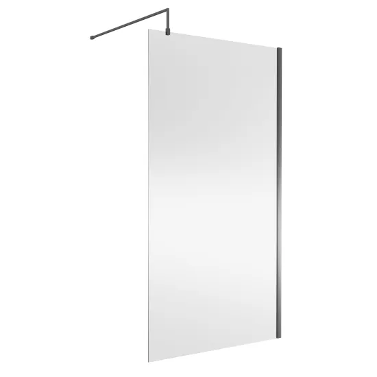 Nuie 1100mm x 1850mm 8mm Wetroom Screen With Brushed Pewter Support Bar