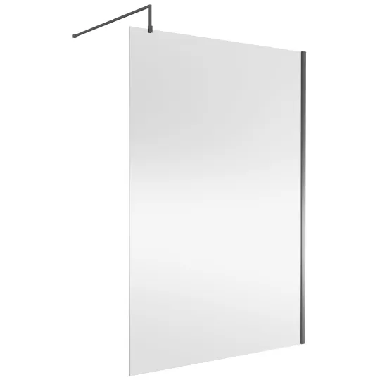 Nuie 1400x1850x8mm Wetroom Screen With Brushed Pewter Support Bar