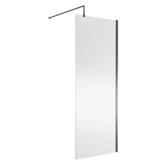 Nuie 800mm x 1850mm 8mm Brushed Pewter Wetroom Screen With Brushed Pewter Support Bar
