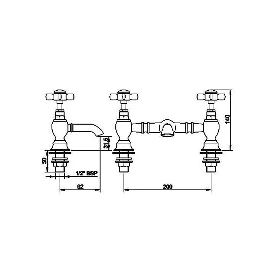 nuie choice Alderton Bridge Basin Mixer (No Waste) - Brushed Brass