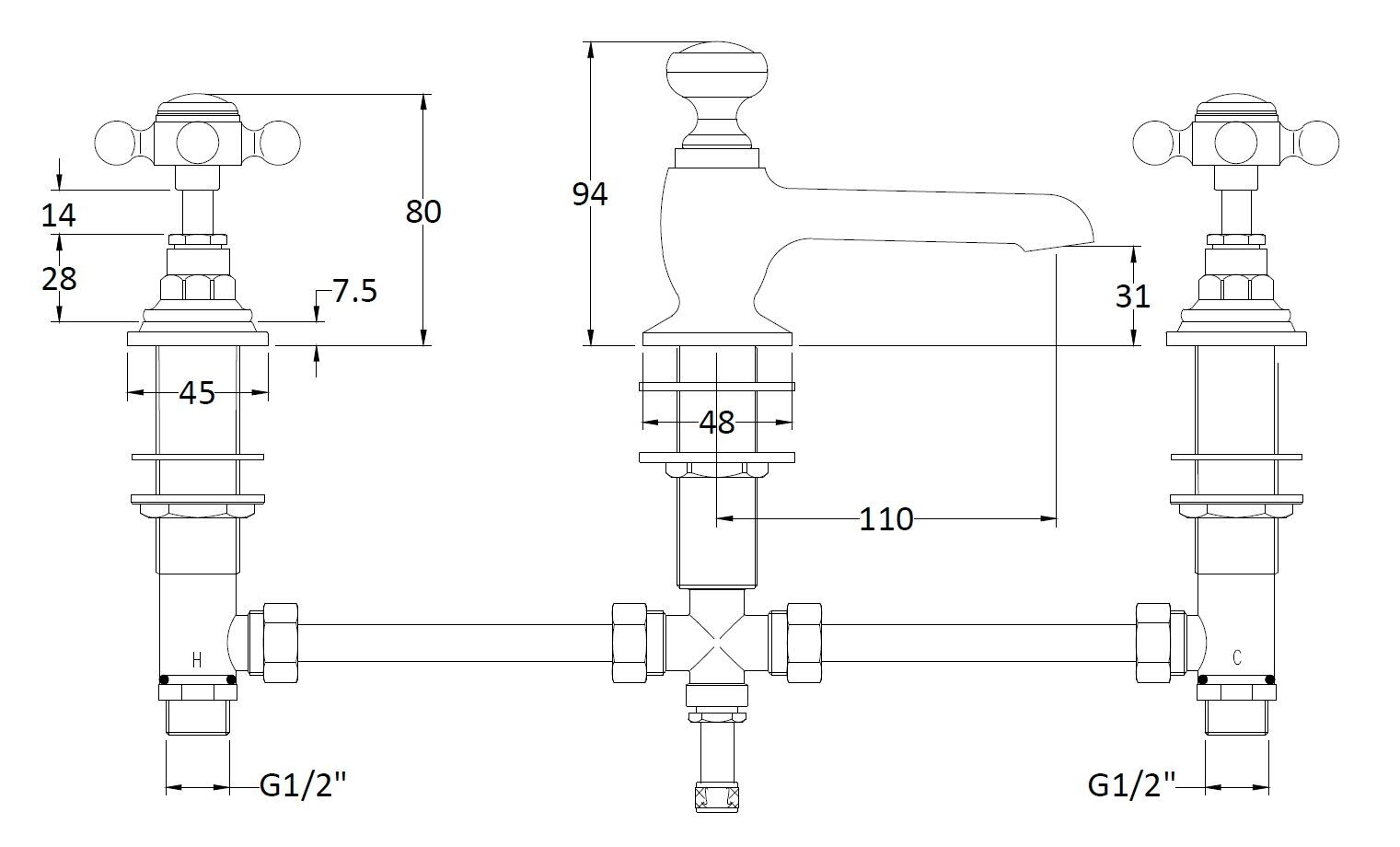 Bayswater 3 Tap Holes Deck Basin Mixer