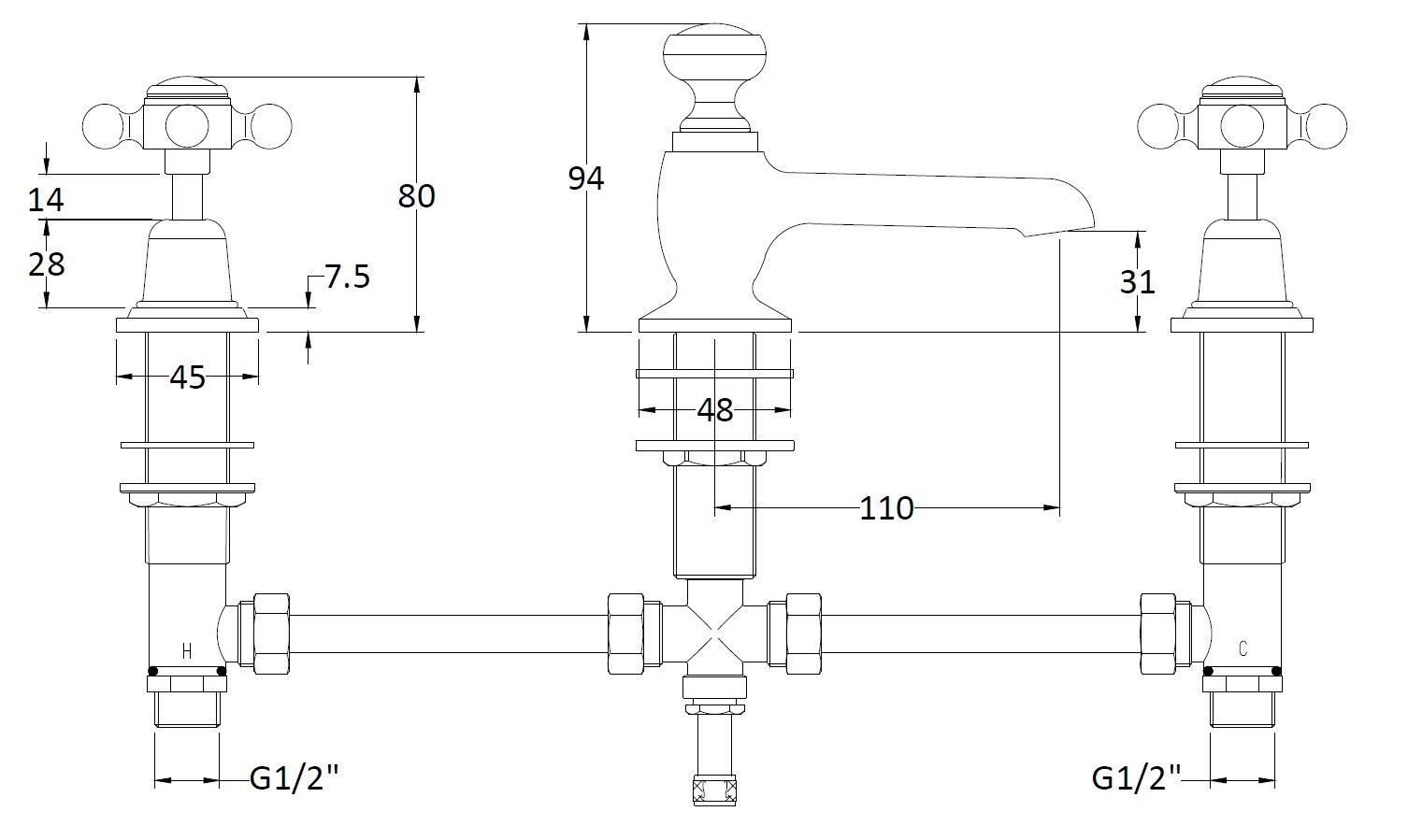 Bayswater 3 Tap Holes Deck Basin Mixer