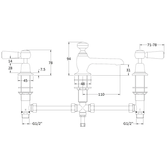 Bayswater 3 Tap Holes Deck Basin Mixer