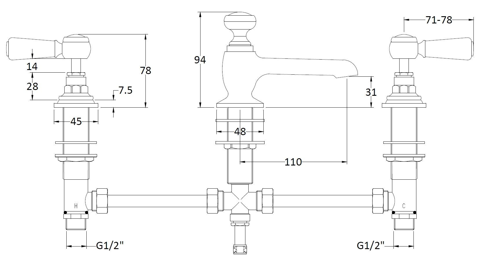 Bayswater 3 Tap Holes Deck Basin Mixer