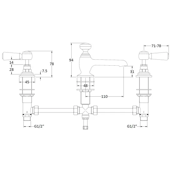 Bayswater 3 Tap Holes Deck Basin Mixer