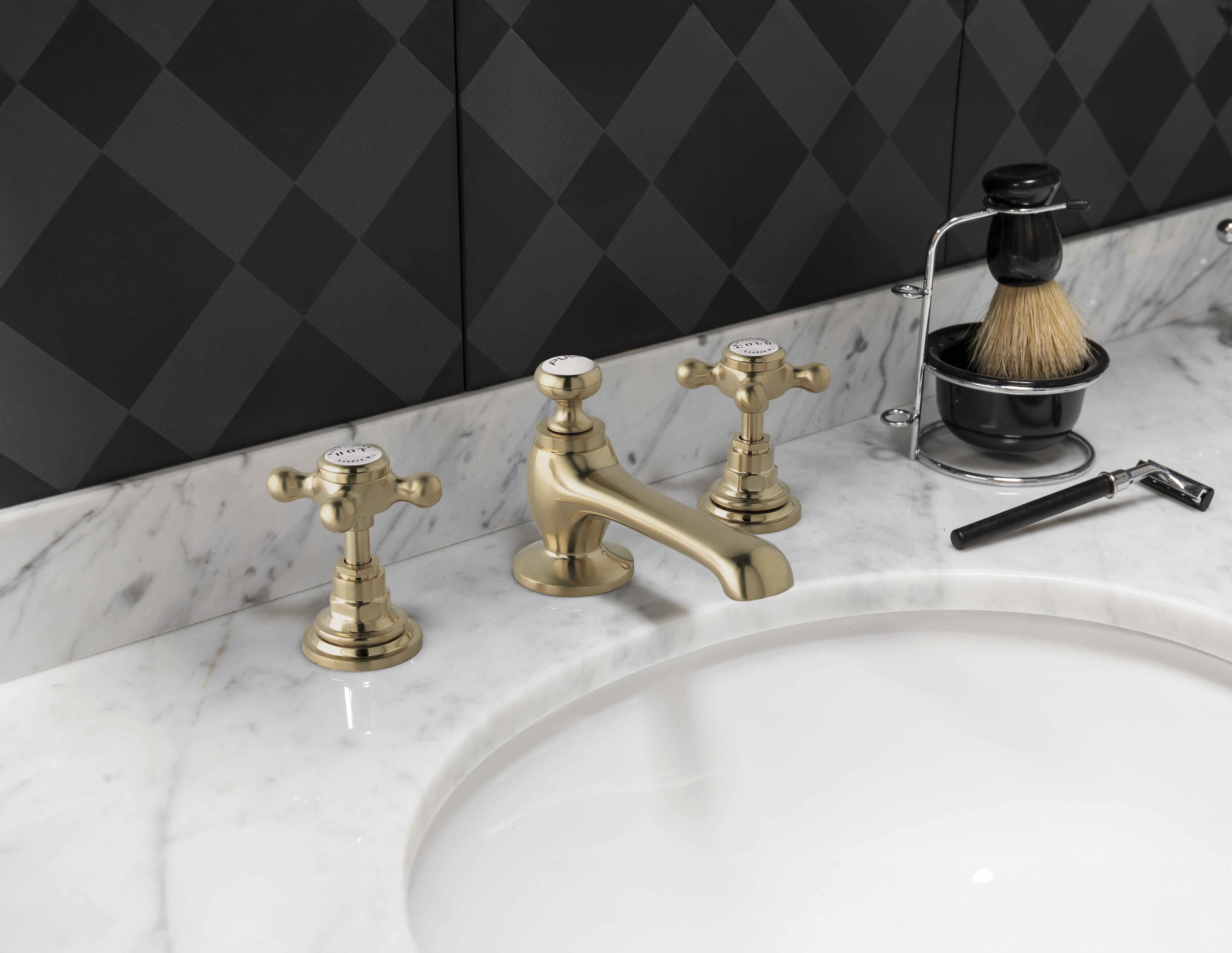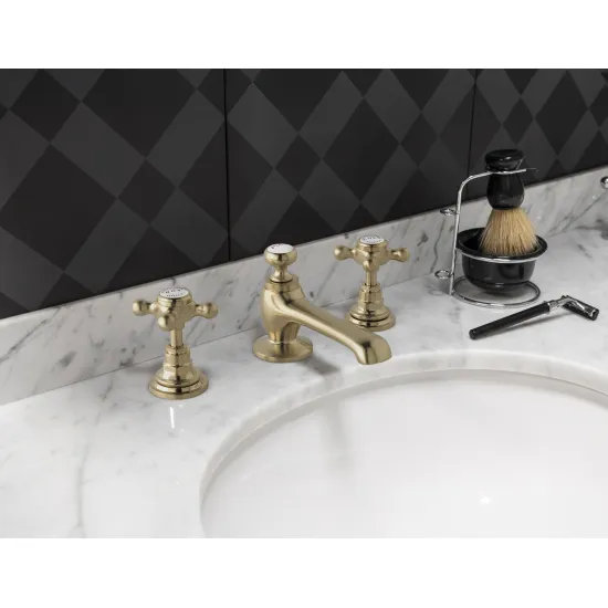 Bayswater 3 Tap Holes Deck Basin Mixer/Xhead/Hex Collar - Brushed Brass