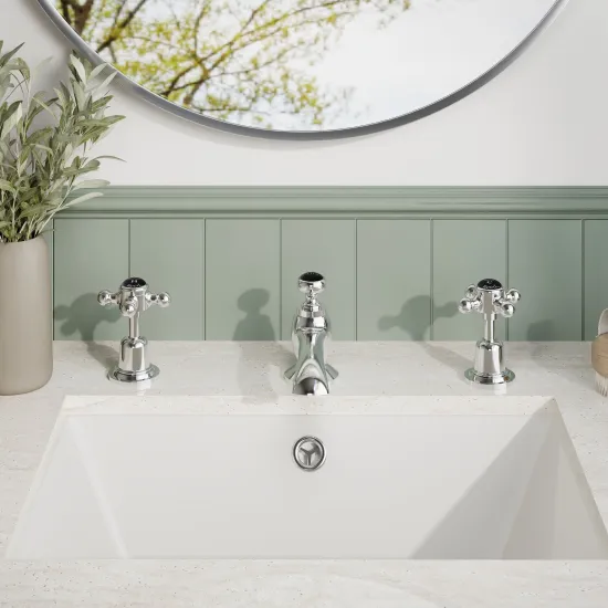 White Topaz With Crosshead Handle 3 Tap Hole Basin Mixer
