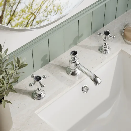 White Topaz With Crosshead Handle 3 Tap Hole Basin Mixer
