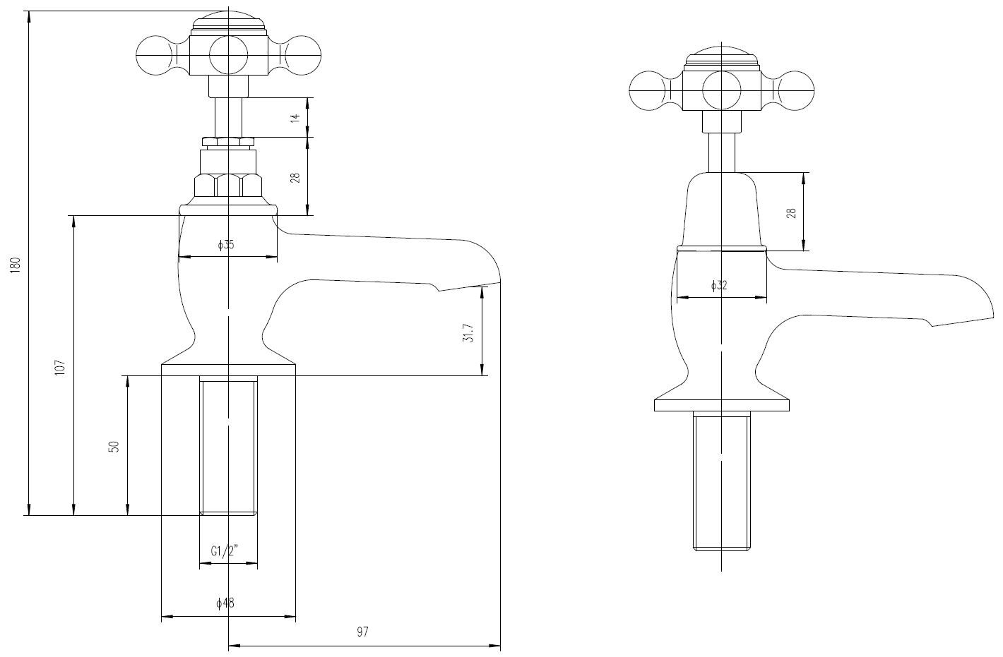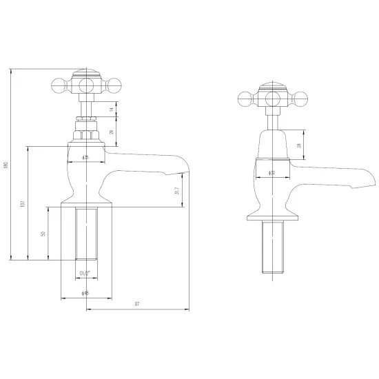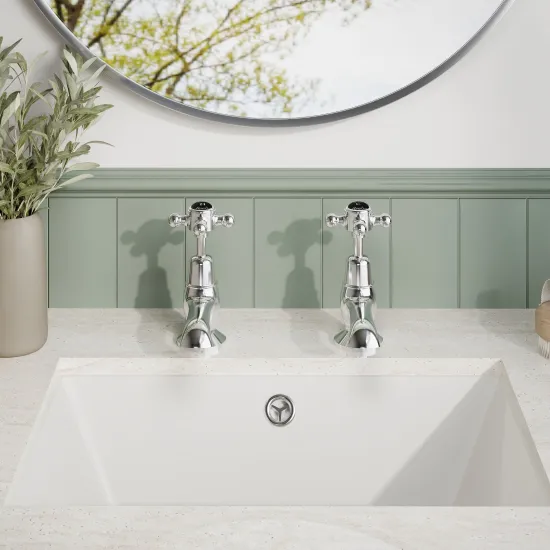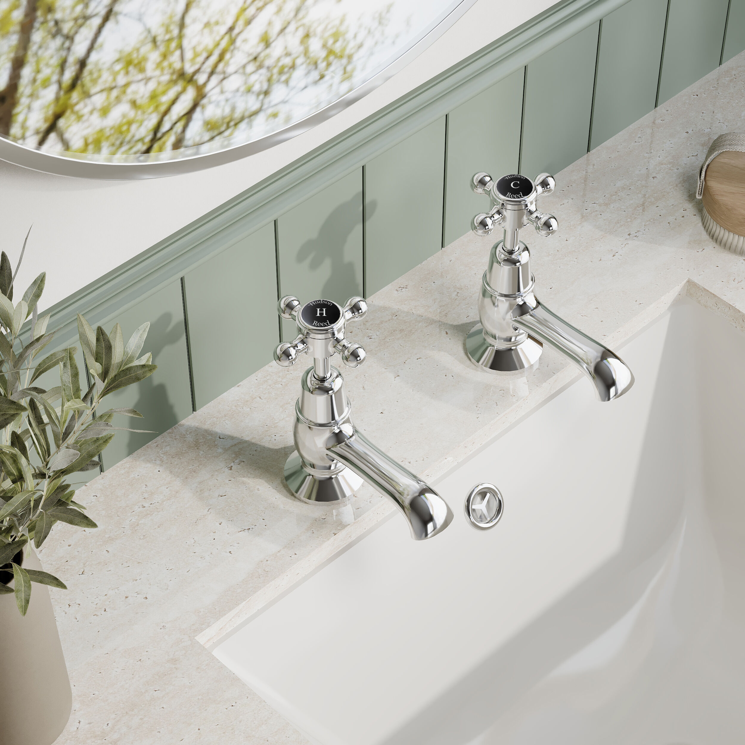 Old London Black Topaz With Crosshead Handle Basin Taps - Chrome / Black