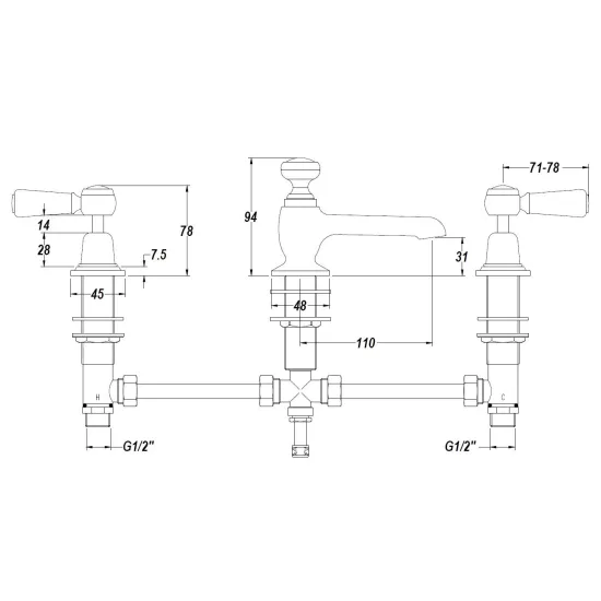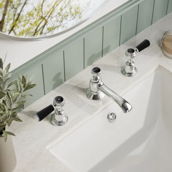 White Topaz With Lever Handle 3 Tap Hole Basin Mixer