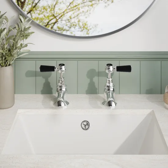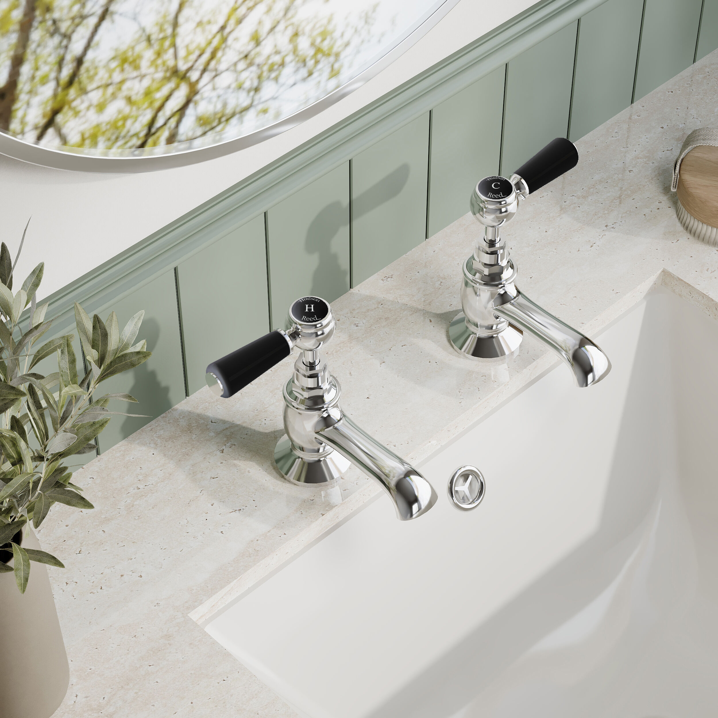 Old London Black Topaz With Lever Handle Basin Taps - Chrome / Black