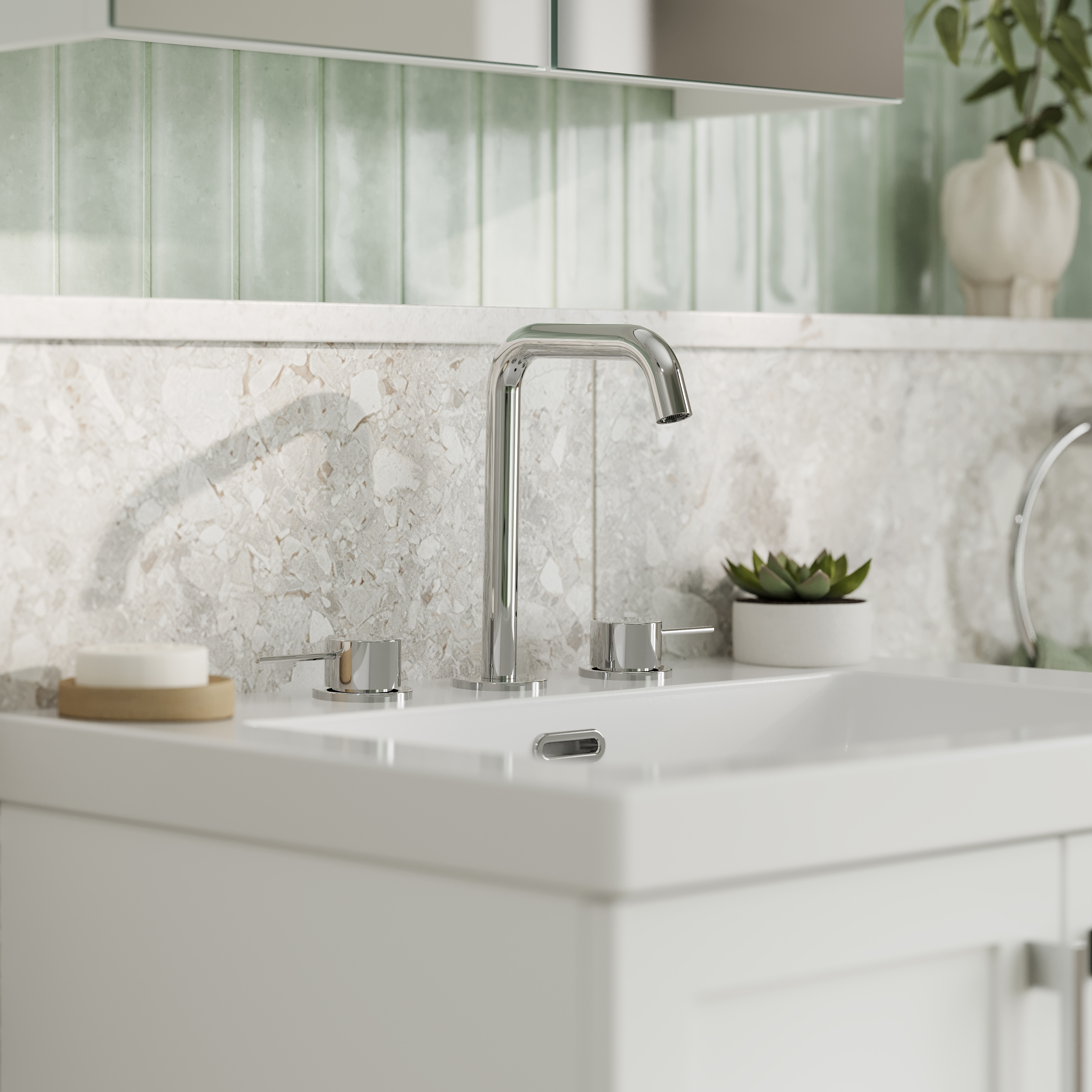 nuie Lux Riven 3 Tap Hole Basin Mixer (P Spout) With Push Button Waste - Chrome