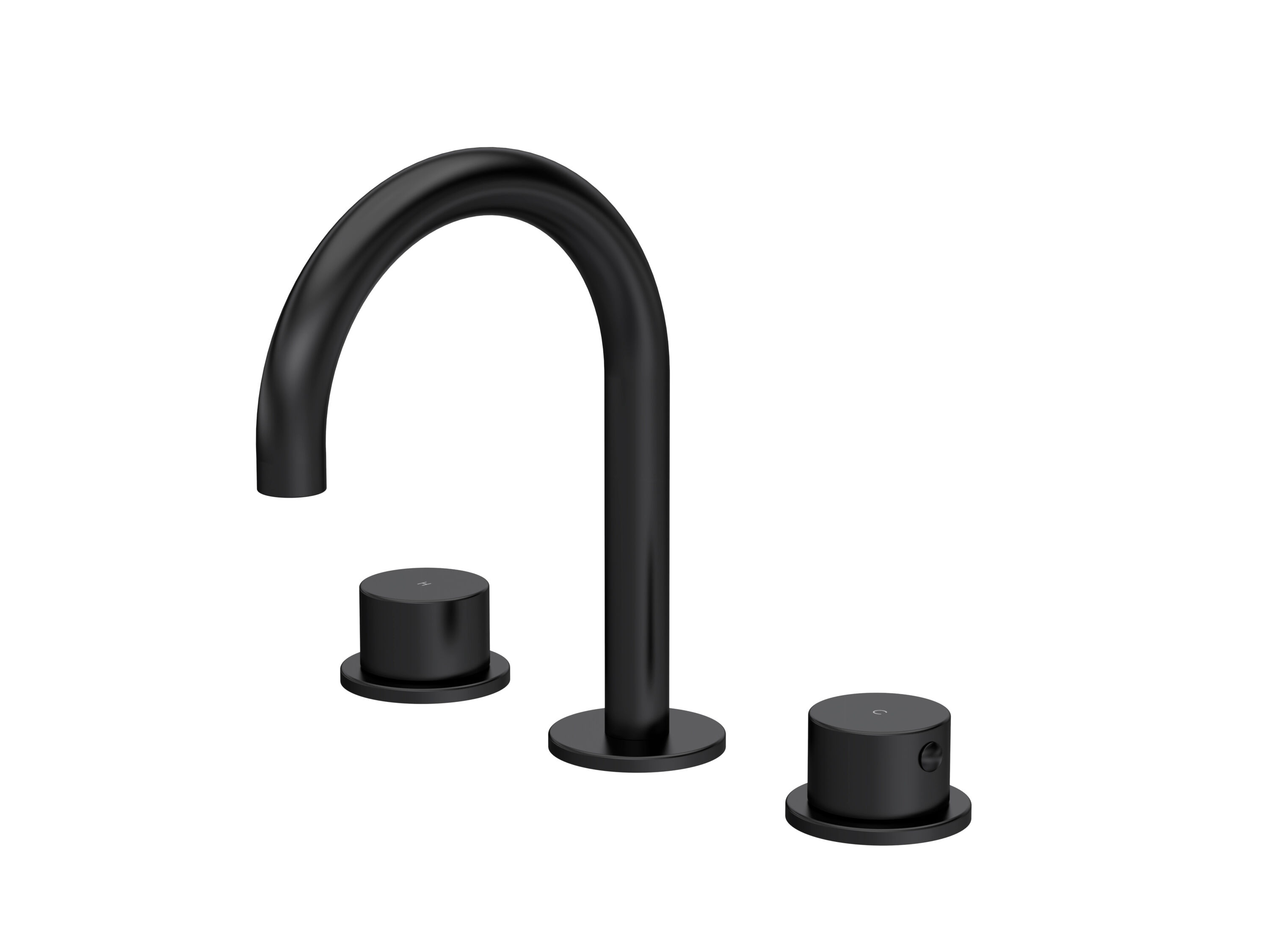 nuie Lux Steeple 3 Tap Hole Basin Mixer (C Spout) With Push Button Waste - Matt Black